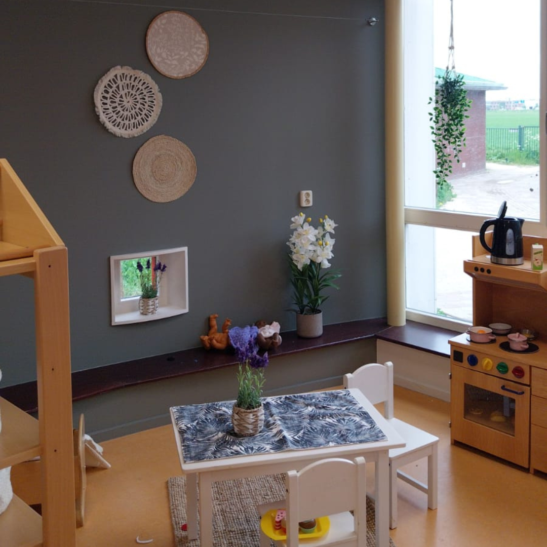 Grosthuizer heeft een kinderdagverblijf voor de jongste kinderen van 0 tot 4 jaar. Het kinderdagverblijf is geopend op dinsdag, donderdag en vrijdag van 7:30 tot 18:00 uur. Met een openingstijd die gemiddeld een uur korter is dan andere opvanglocaties, profiteer je van lagere kosten - zonder in te leveren op de kwaliteit van de zorg die jouw kind verdient.Onze medewerkers zijn babyspecialisten, waardoor er veel aandacht is voor het jonge kind. We werken met thema's en bieden activiteiten aan die passen bij de leeftijd en ontwikkeling van ieder kind. Zo leren en groeien de kinderen spelenderwijs in een veilige en gezellige omgeving. Buiten kunnen de kinderen spelen in de mooie natuurontdektuin.