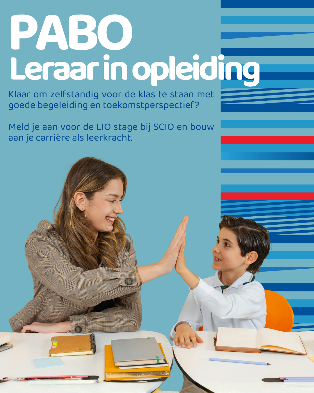 Bij SCIO bieden we stageplekken in zowel de onder- als bovenbouw, verspreid over meerdere kindcentra in Hoorn en omgeving. Je krijgt goede begeleiding van ervaren collega's en de ruimte om brede praktijkervaring op te doen binnen onze High Performance Scholen.